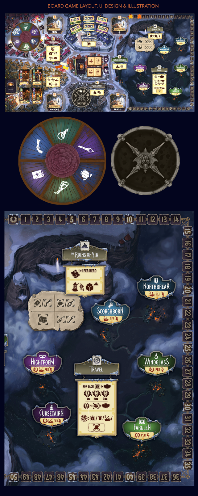 Working with Matt Paquette and Elf Creek Games, I laid out, illustrated & designed the games UI, logo iconography, kickstarter campaign and some of the card illustrations.